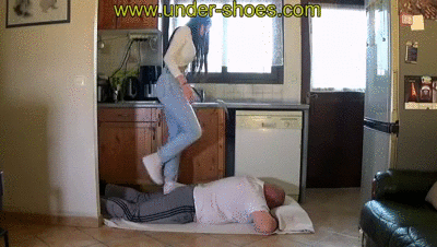Das kleine Dickerchen bekommt heute ein Trampling in der Küche an seinem Lieblingsort. Mit Turnschuhen trampelt sie den ganzen Körper ab. Der Schwanz und die Eier sowie das Gesicht werden heftiger getrampelt. Aber auch die Beine und die Arme werden gestampft. Beim CBT und beim Facetrampling fängt er an zu heulen. Sein Kopf ist schon ganz blau, doch die Mistress ignoriert sein jammern und trampelt einfach weiter, bis sie die Session für beendet erklärt. Das hat sich der Loser wohl leichter vorgestellt.